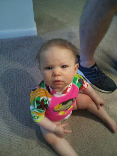 right before her first trip to the beach.. she loved to eat sand, but the gulf was kind of scary for her. she liked to be walked by it and put down for naps though.. but toes in? helll no! haha
